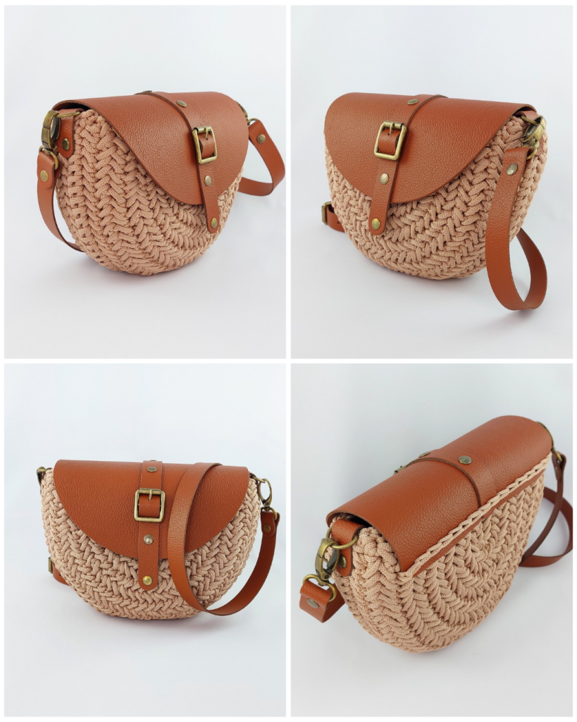 KOSZYK BOHO – NA RAMIĘ – ZE SZNURKA BAWEŁNIANEGO SKÓRA NATURALNA
