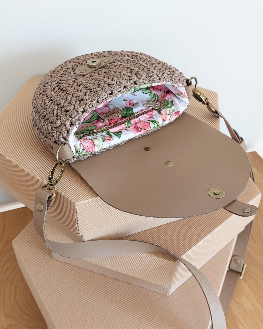 Wnętrze torebki wykończone jest ręcznie wszywaną, bawełnianą podszewką z praktyczną kieszonką zapinaną na zamek – idealną na drobiazgi, które warto mieć zawsze pod ręką.