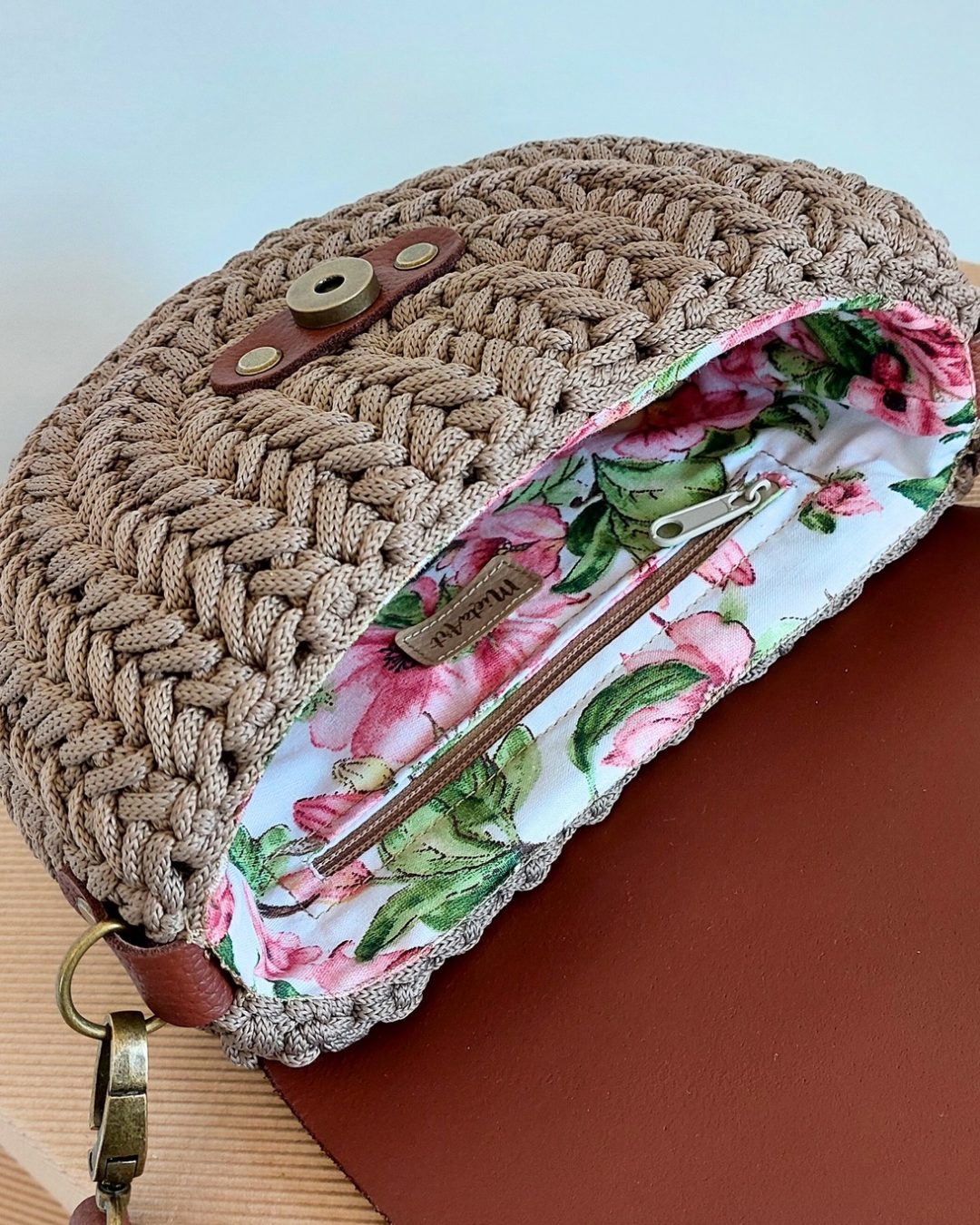 Wnętrze torebki wykończone jest ręcznie wszywaną, bawełnianą podszewką z praktyczną kieszonką zapinaną na zamek – idealną na drobiazgi, które warto mieć zawsze pod ręką.