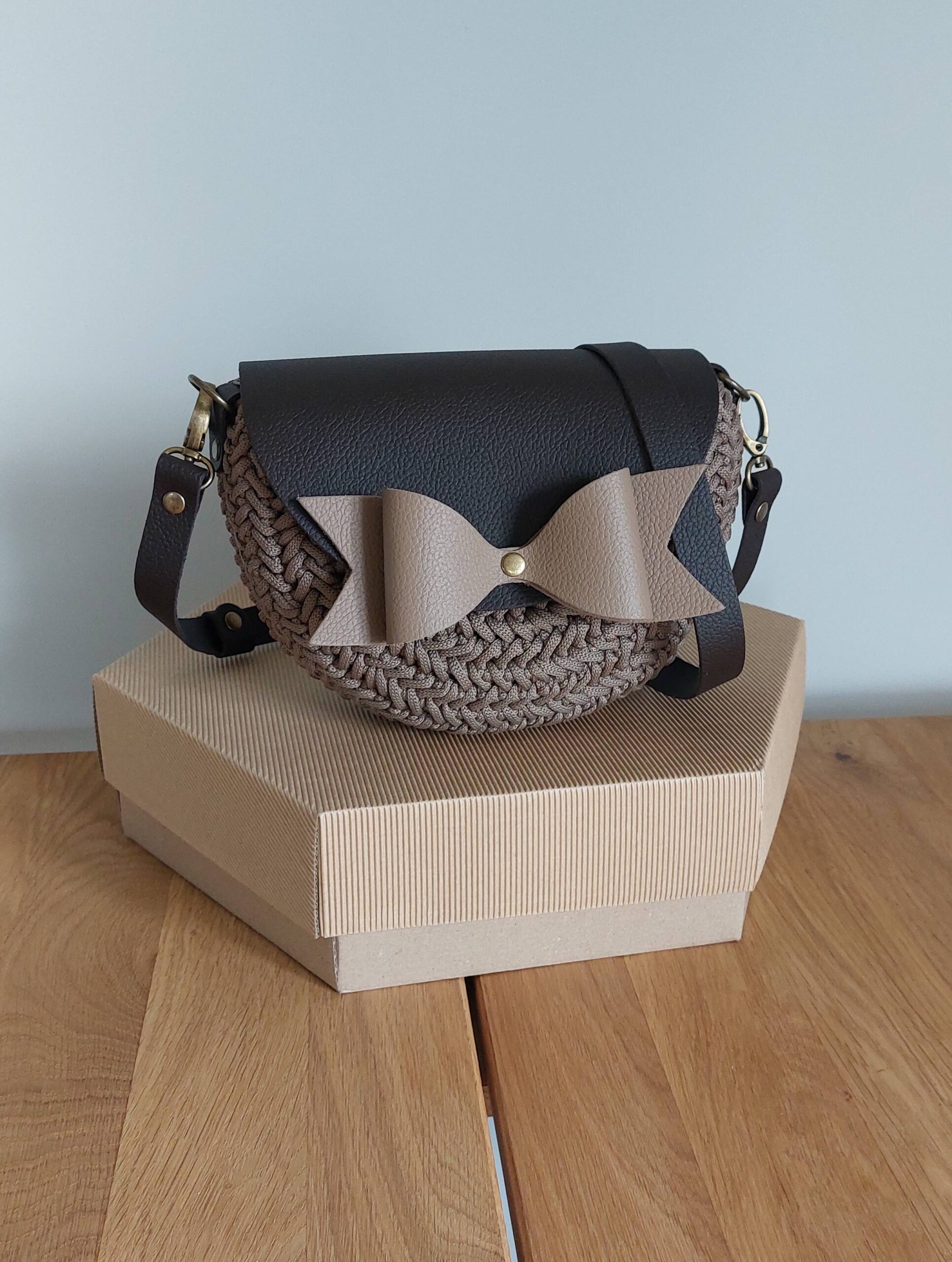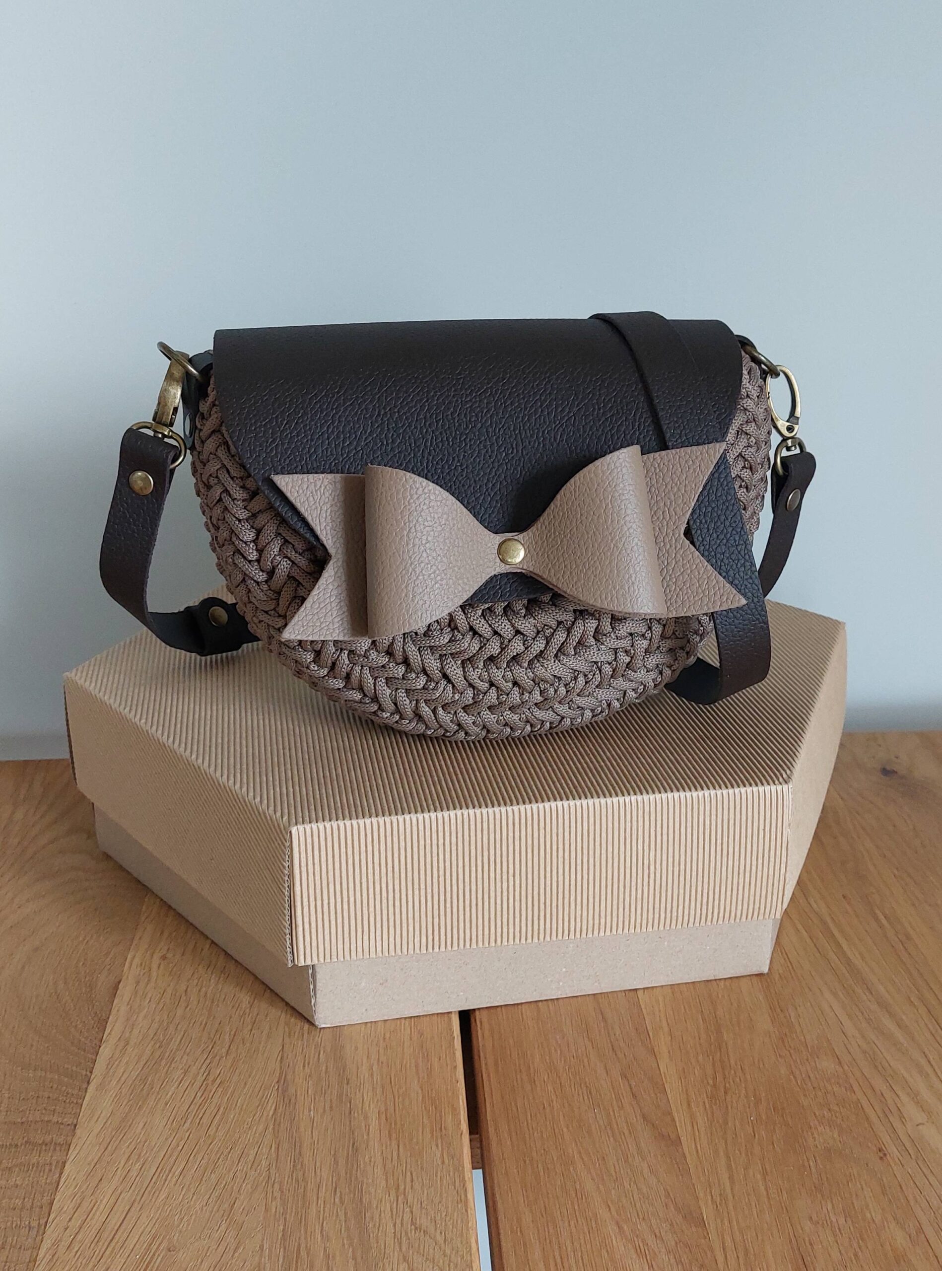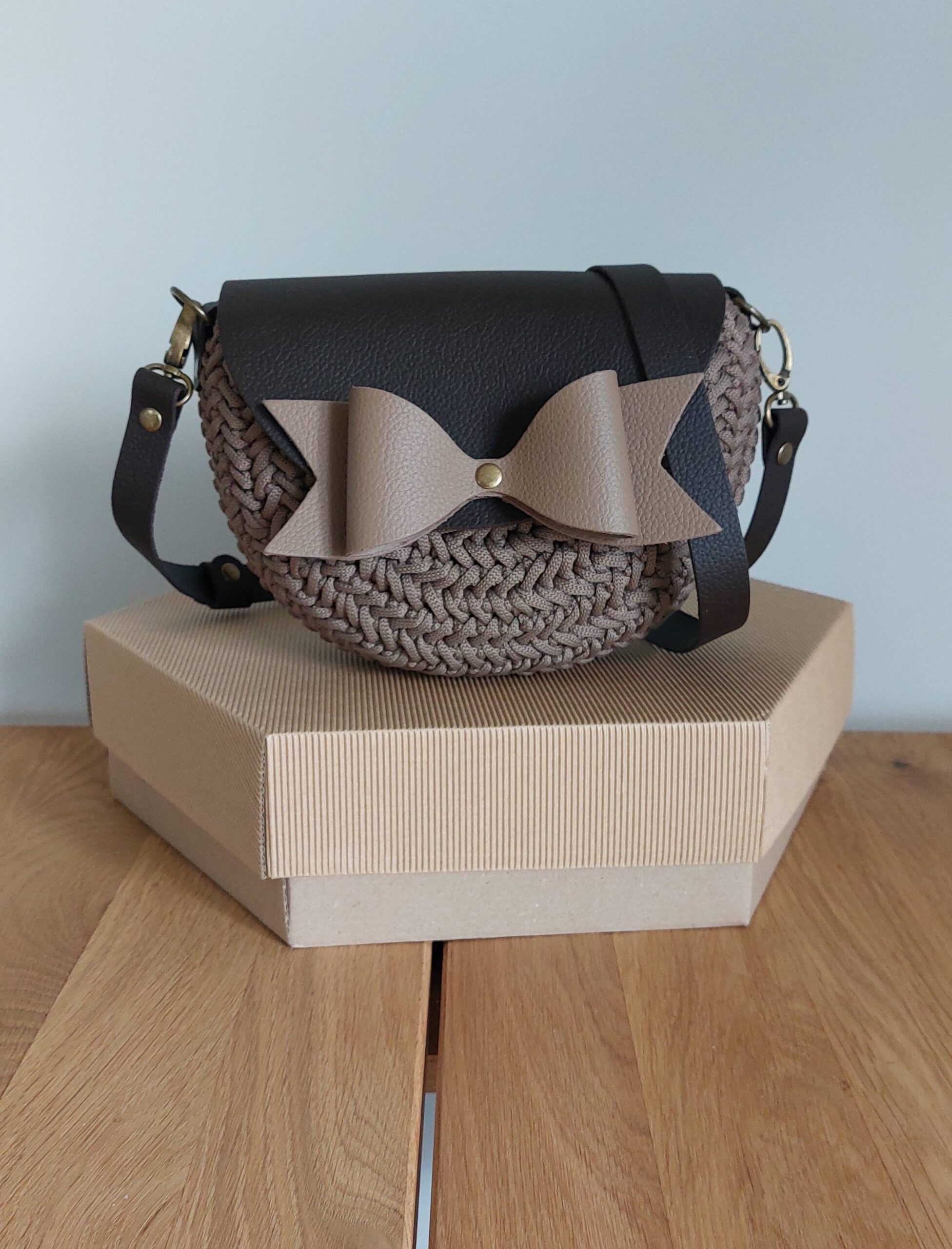 TOREBKA SZYDEŁKOWA MIA Z KOKARDKĄ ZE SZNURKA SKÓRA NATURALNA – KAWA/CZEKOLADA-KAWA