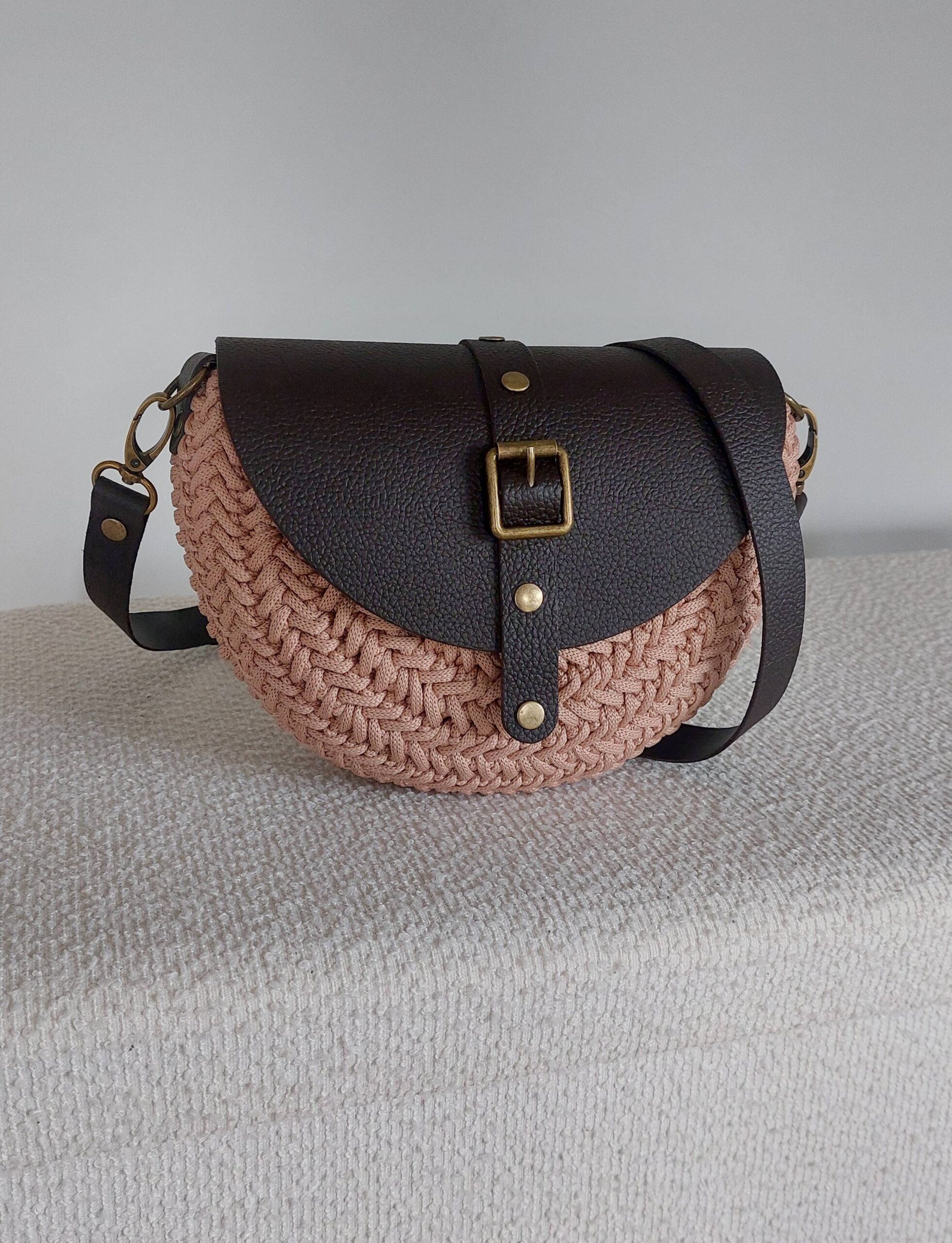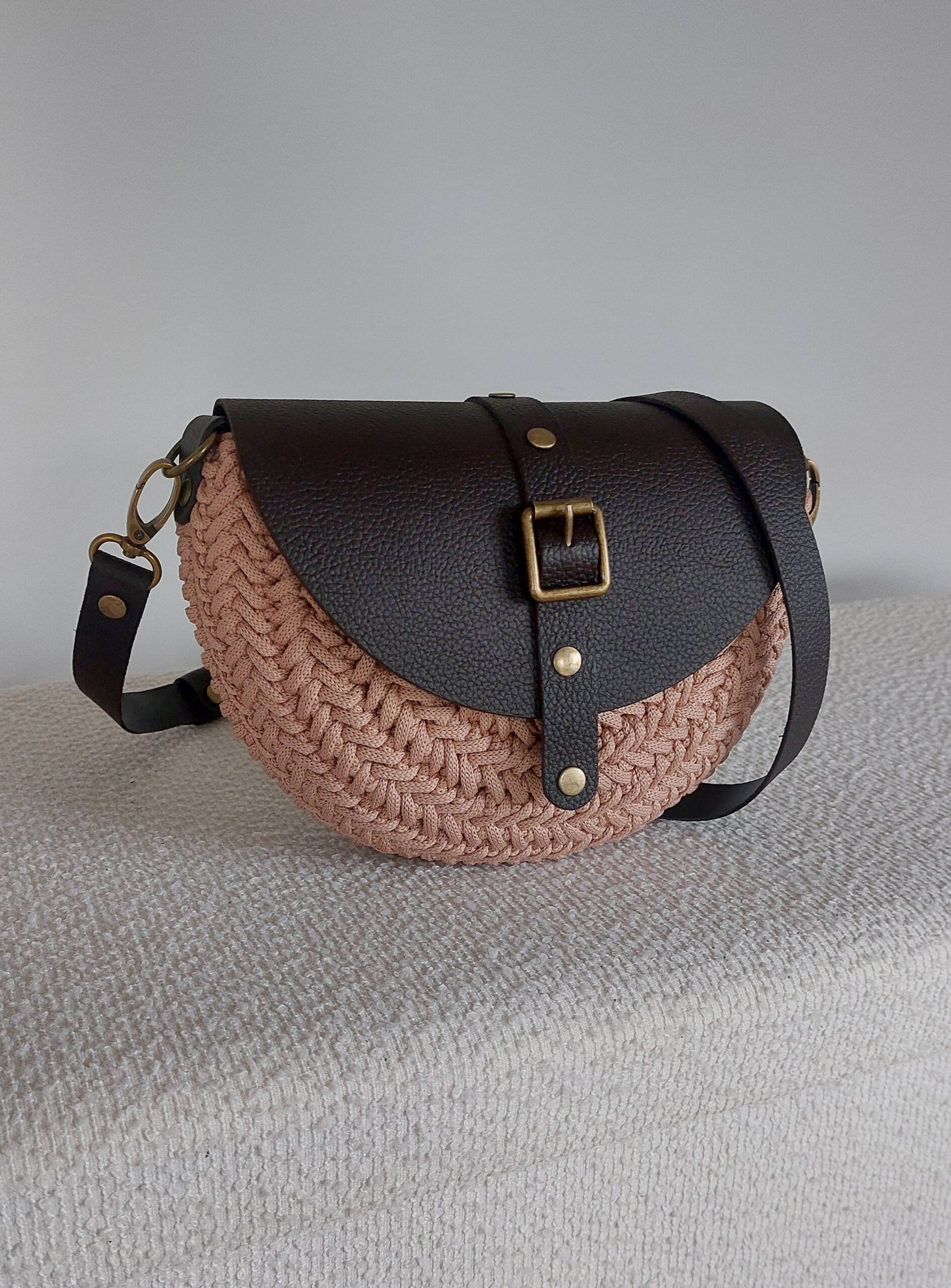 Ta wyjątkowa torebka powstaje z wysokiej jakości sznurka premium (100% jedwab poliestrowy), który nadaje jej subtelną strukturę i elegancki wygląd. Całość uzupełniają elementy ze skóry naturalnej – klapa, pasek oraz detale – tworząc harmonijną i ponadczasową kompozycję.