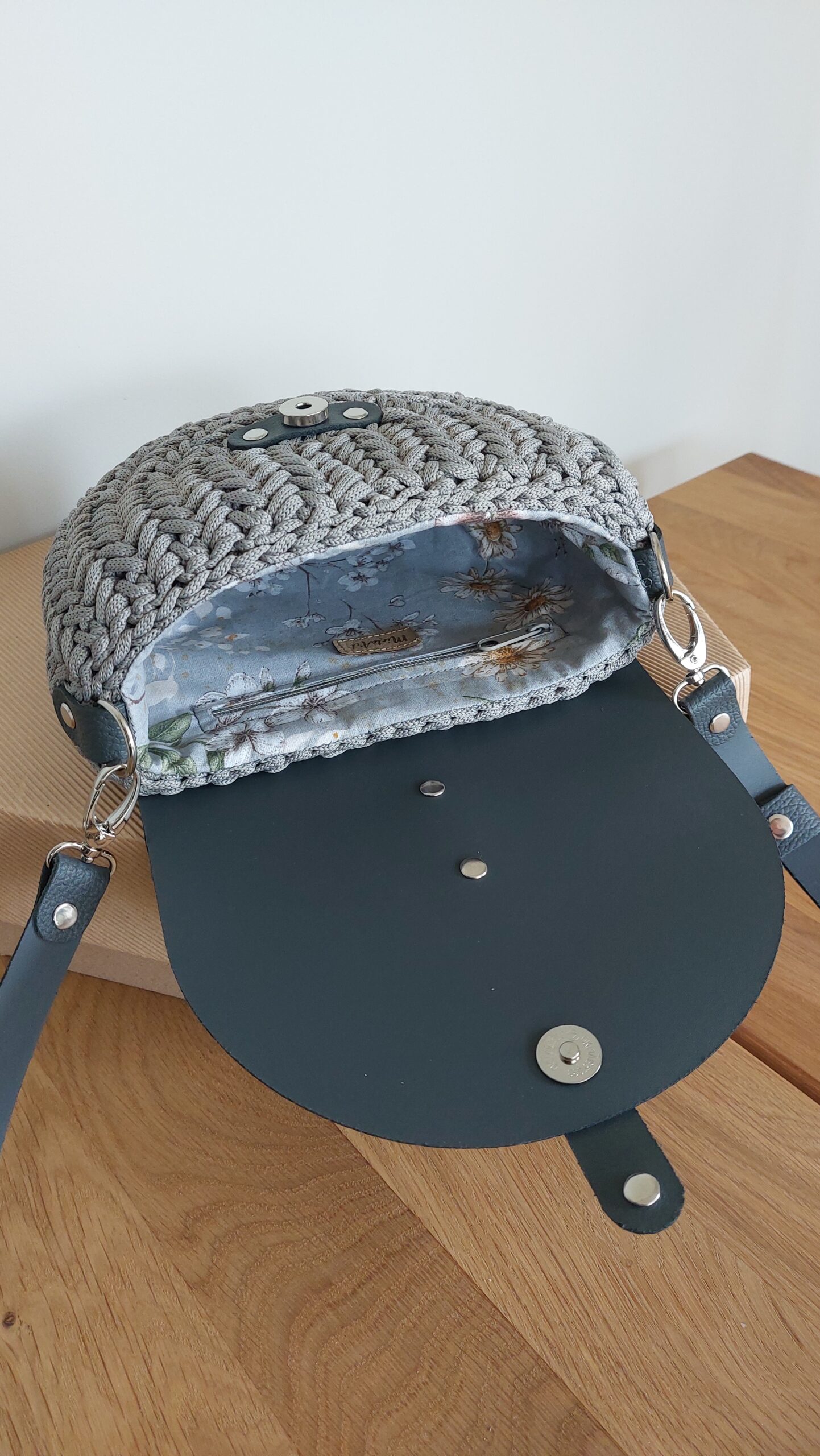 Torebka średniej wielkości, zapinana na magnes. W środku bawełniana, wszywana ręcznie podszewka z kieszonką na drobiazgi zapinana na zamek. Regulowany pasek (min. 105cm – max. 130cm) pozwoli na noszenie jej na ramieniu lub założenie jej na skos.